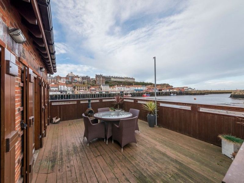 This beachfront holiday home in Whitby features one bedroom, a fully equipped kitchen with a dishwasher and oven, and one bathroom featuring a bath, hair dryer, and washing machine.